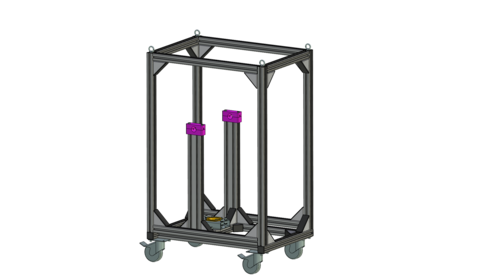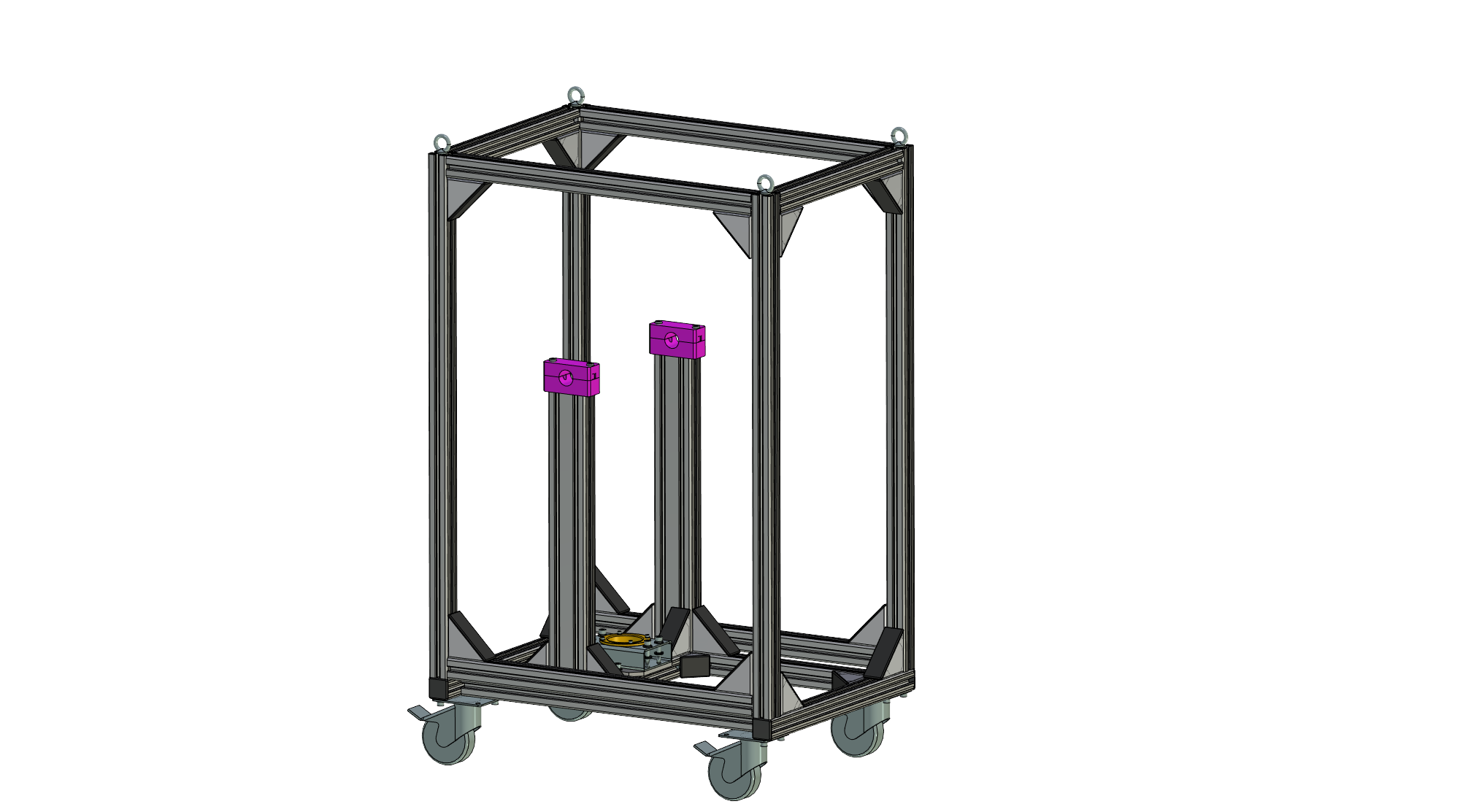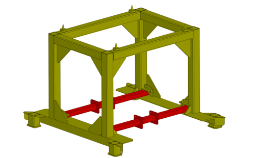 Stojan, jako součást balení a transportního přípravku. Pevně drží zařízení během transportu, umožňuje expedici z dřevěného přepravního boxu, orientaci před zavěšením na jeřáb a definuje polohu zavěšení.