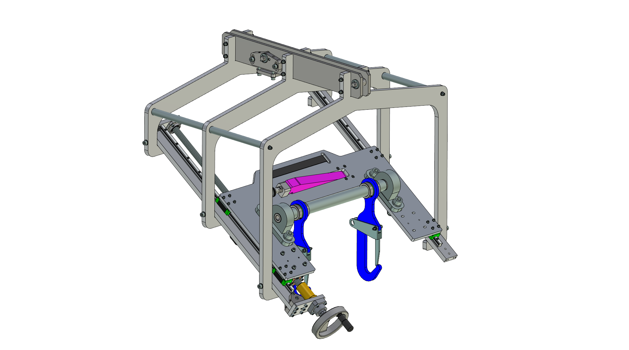 Jednoúčelový manipulační závěs na jeřáb s jednoosým polohováním pro přesnou instalaci dílu do sestavy.