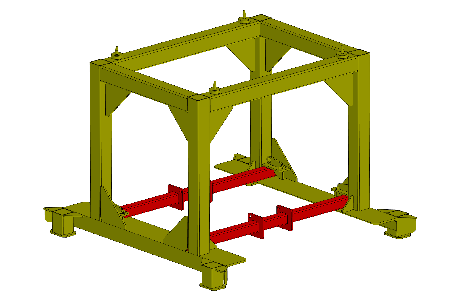 Tranverza pro jeřábovou manipulaci s dlouhými plechovými bednami.