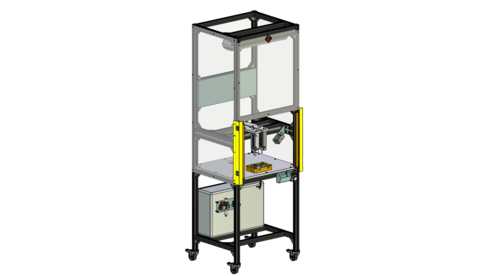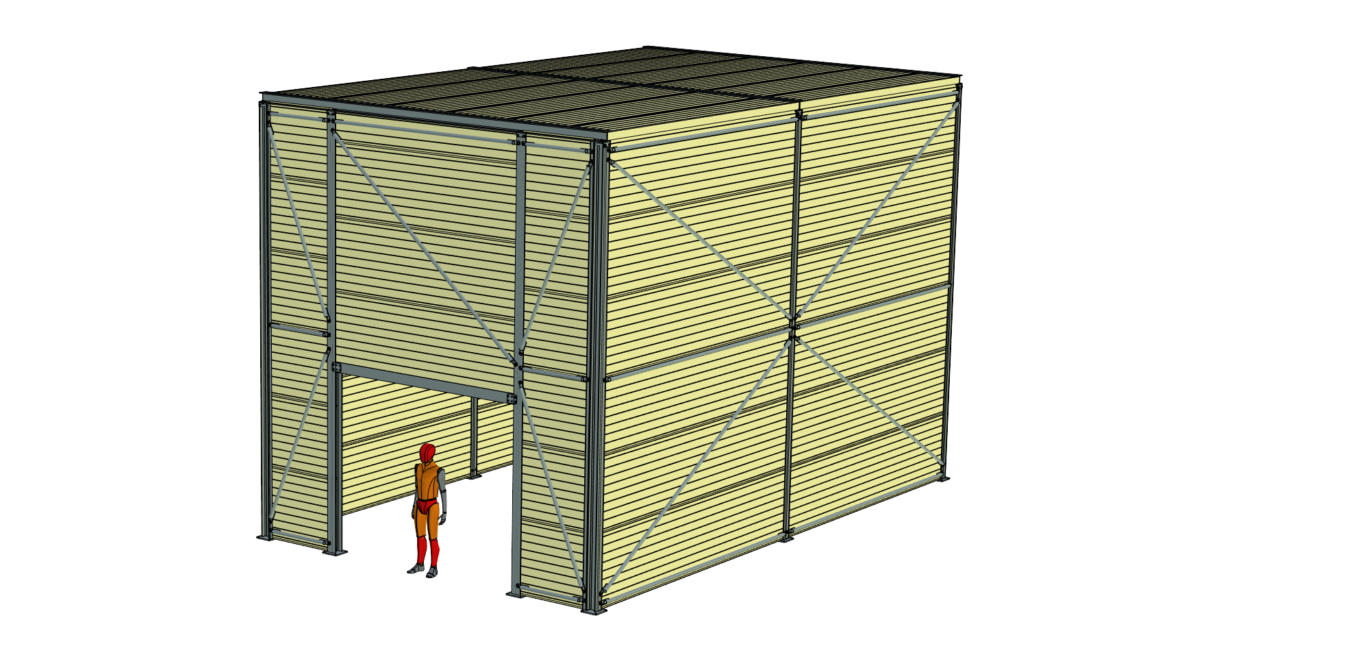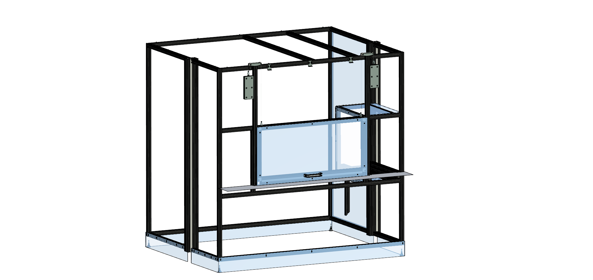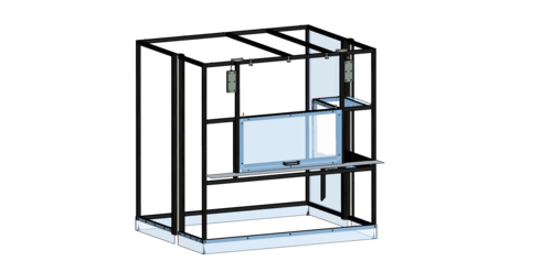Zakrytování stávající testovací stanice s ručním otevíráním dveří s protizávažím.