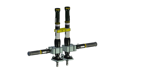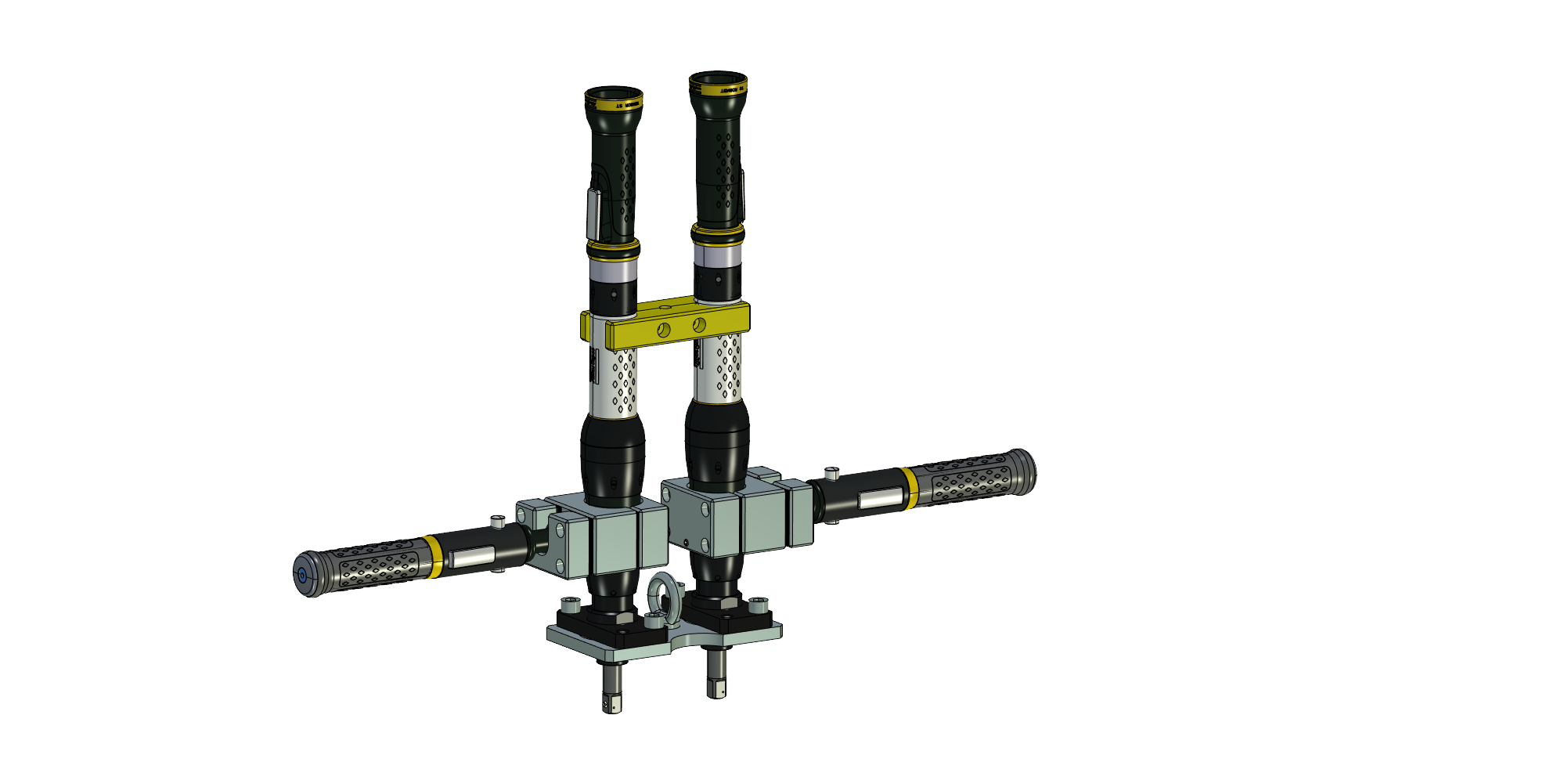Dvouruční dvojšroubovák. Propojení dvou průmyslových šroubováků do jednoho celku.