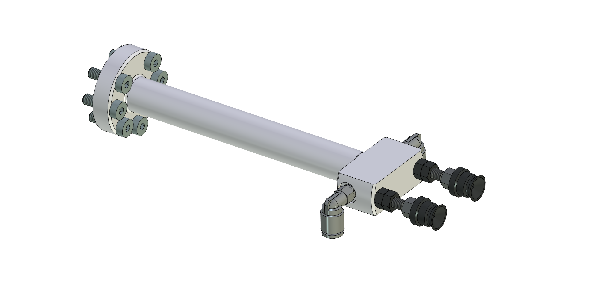 Ručně ovládaná zátka pro výstupní test těsnosti s plněním testovacím médiem.