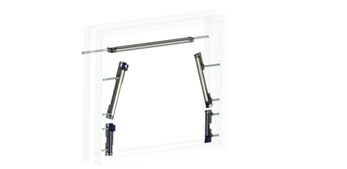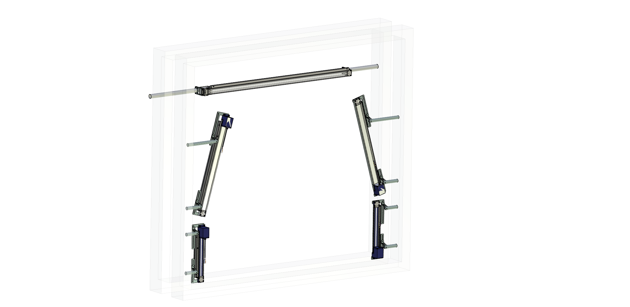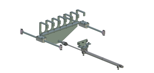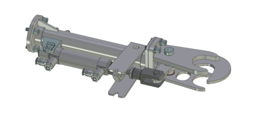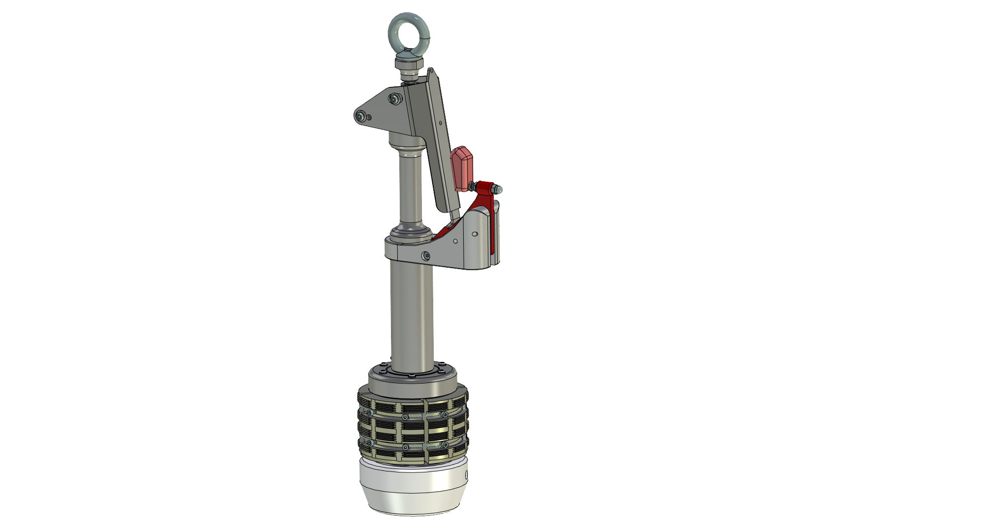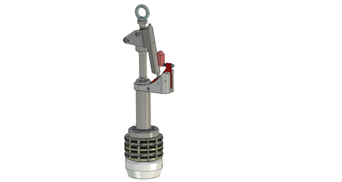 Jednoúčelový manipulační závěs na jeřáb s jednoosým polohováním pro přesnou instalaci dílu do sestavy.