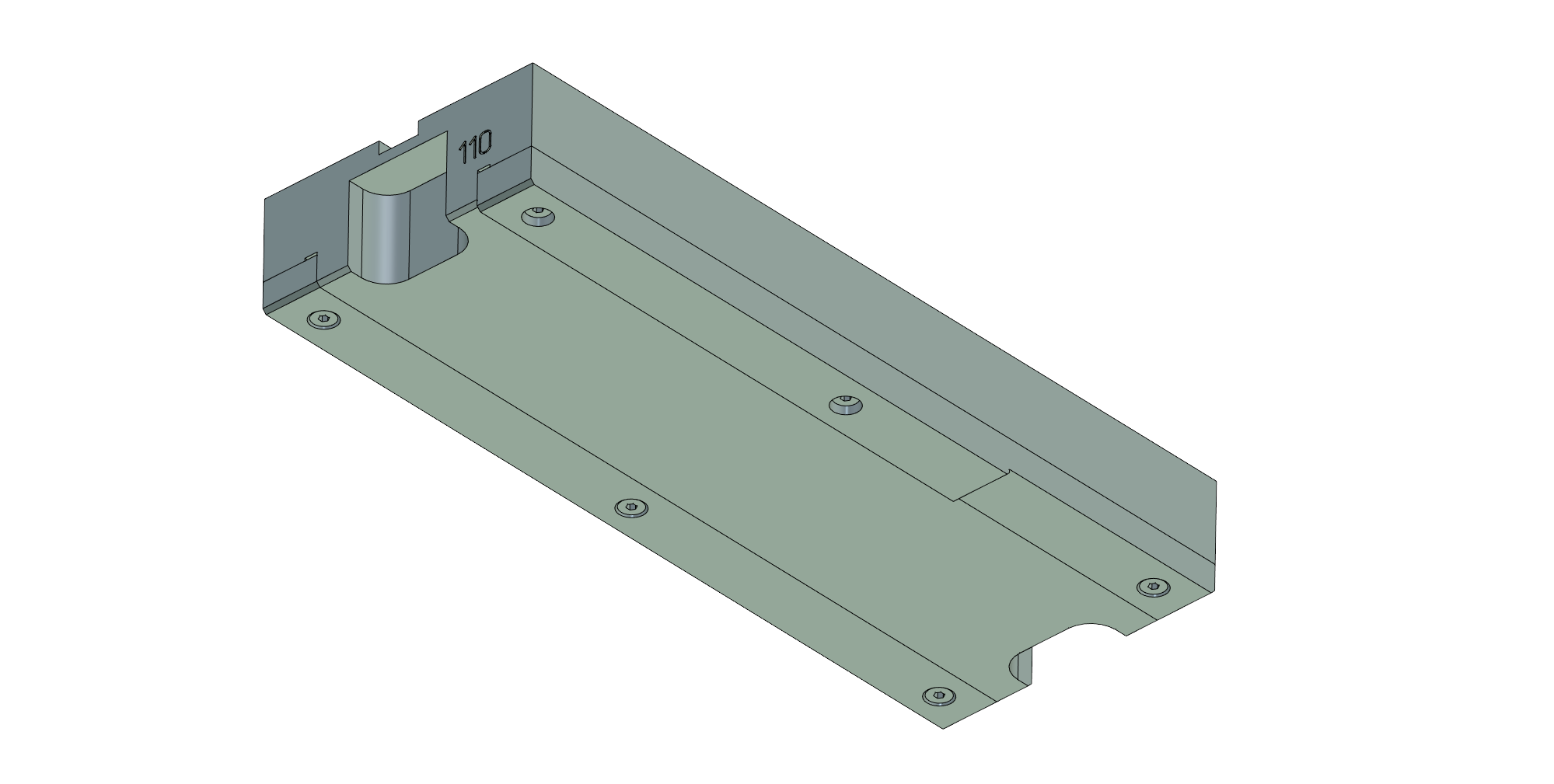 Hnízdo pro klipování kovových prvků do plastového dílu. Levá varianta.