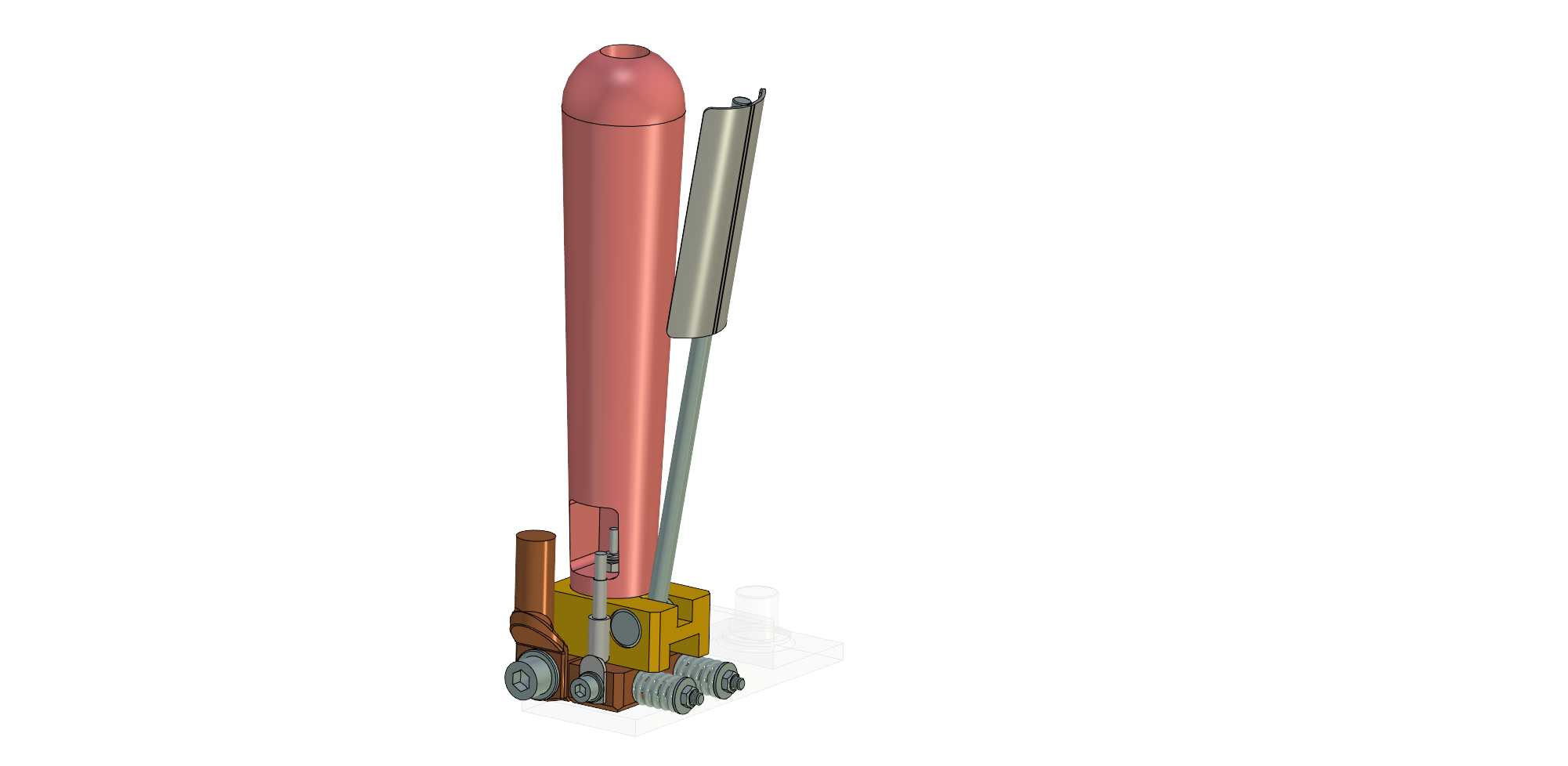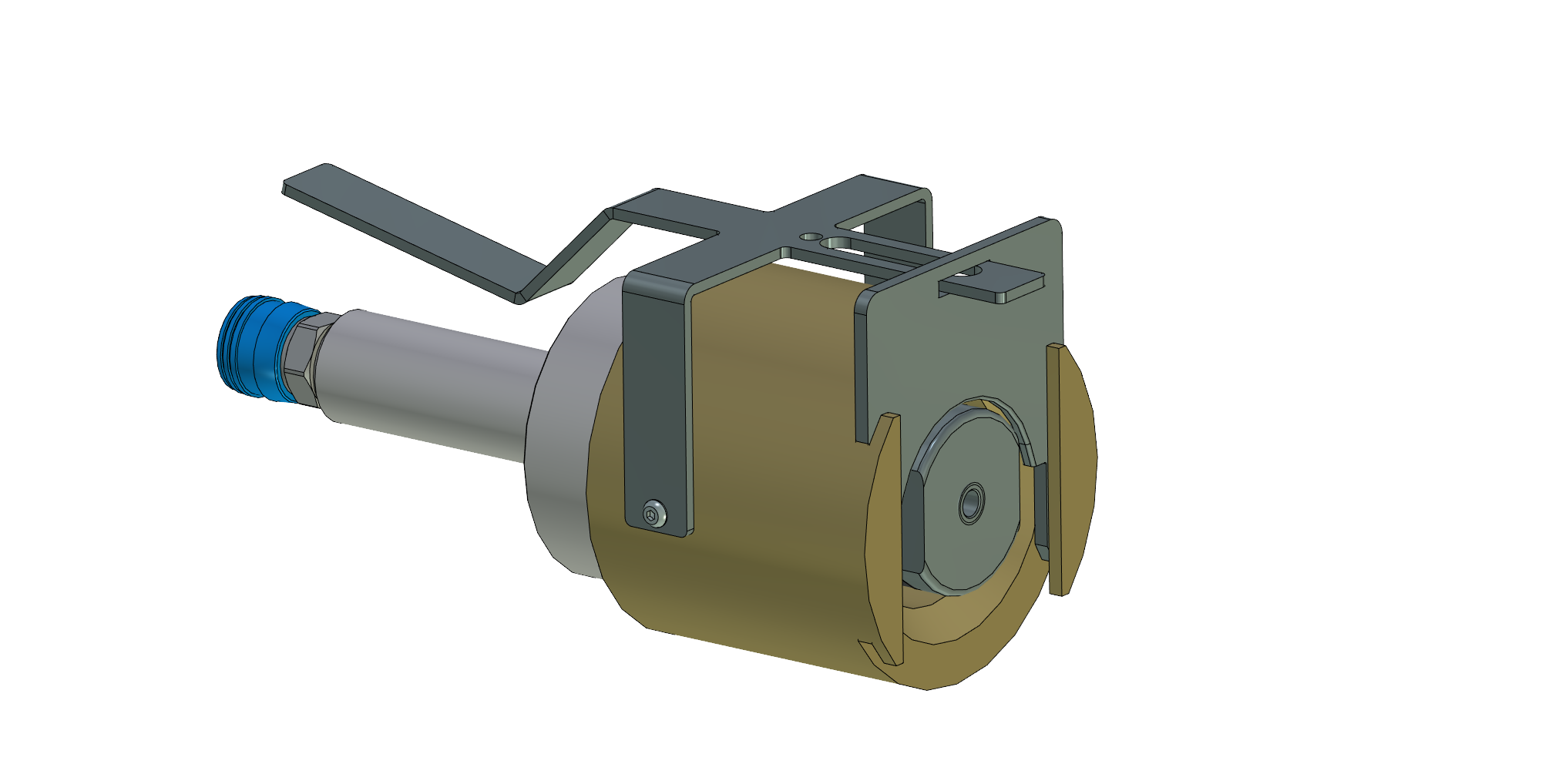 Kleština proudového testeru. Kleština se nasadí na pól baterie a silou pružiny vytvoří robustní galvanické propojení. Pro následný test. Kleština je vybavena senzorem, který hlídá správné nasazení.