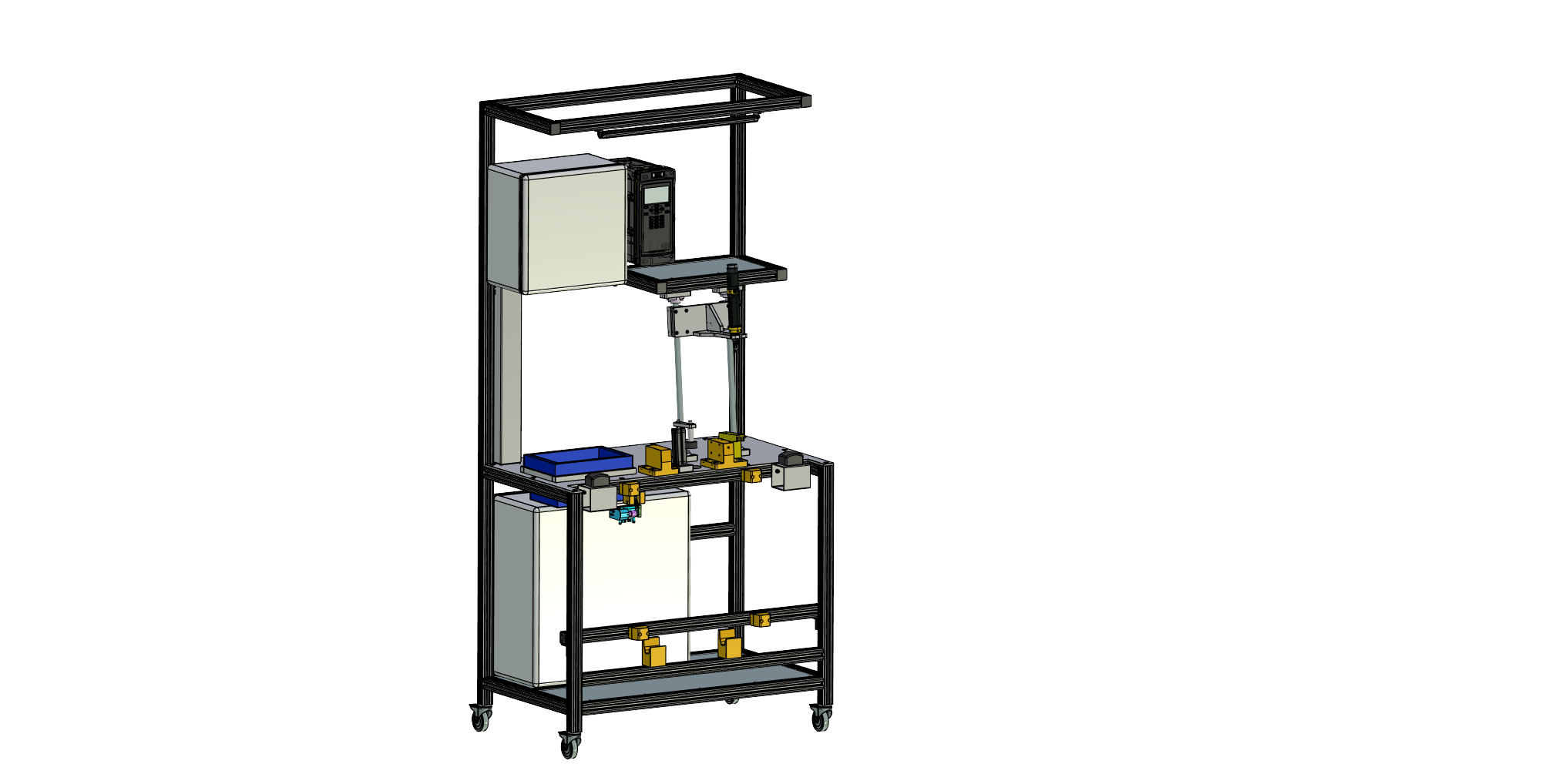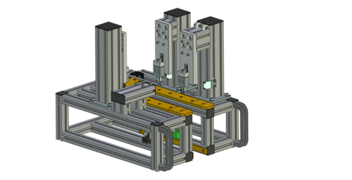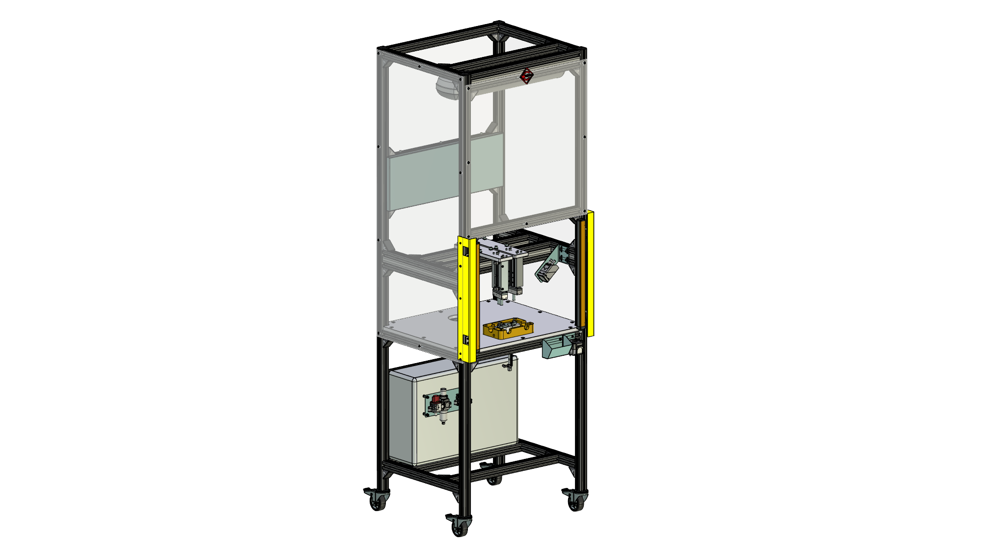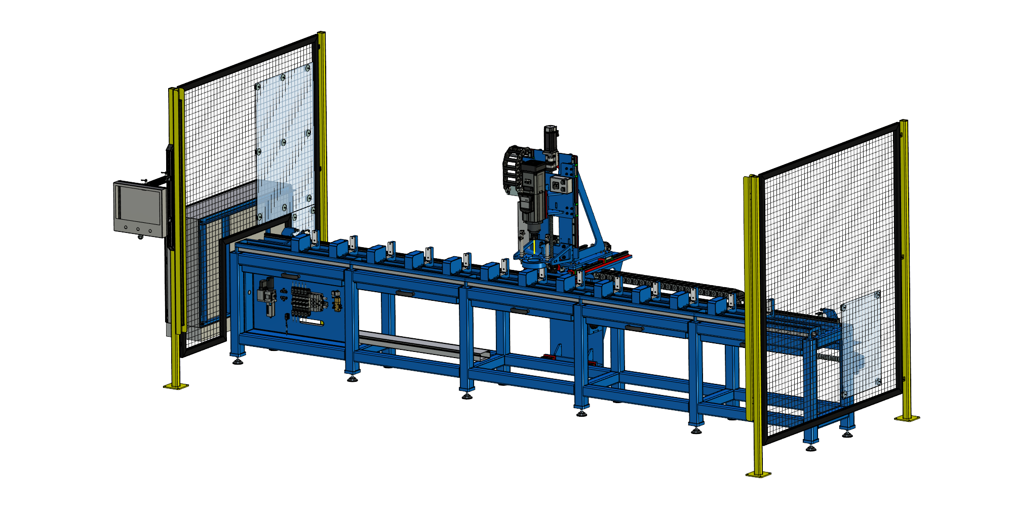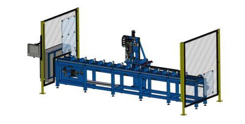Jednoúčelový vrtací stoj pro vrtání konců hliníkových profilů. Polohu vrtacího vřetene je možné programově nastavit v osách X, Y a Z. Programově lze nastavit otáčky vřetene i posuv vrtáku. Pneumatické upnutí (respektive uvolnění) se provede automaticky při každém spuštění (respektive dokončení) cyklu. Založení a odebírání polotovaru má na starost obsluha zařízení.