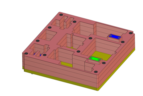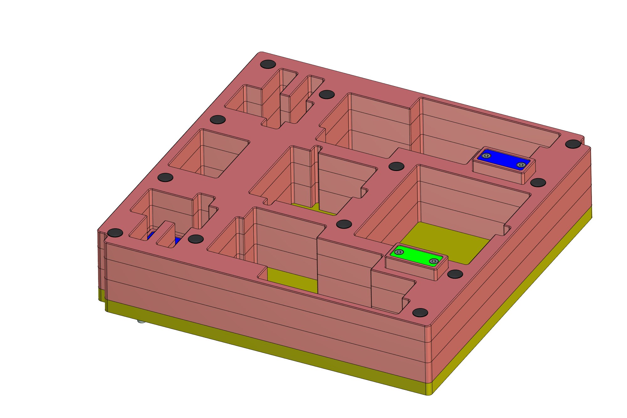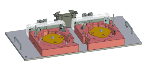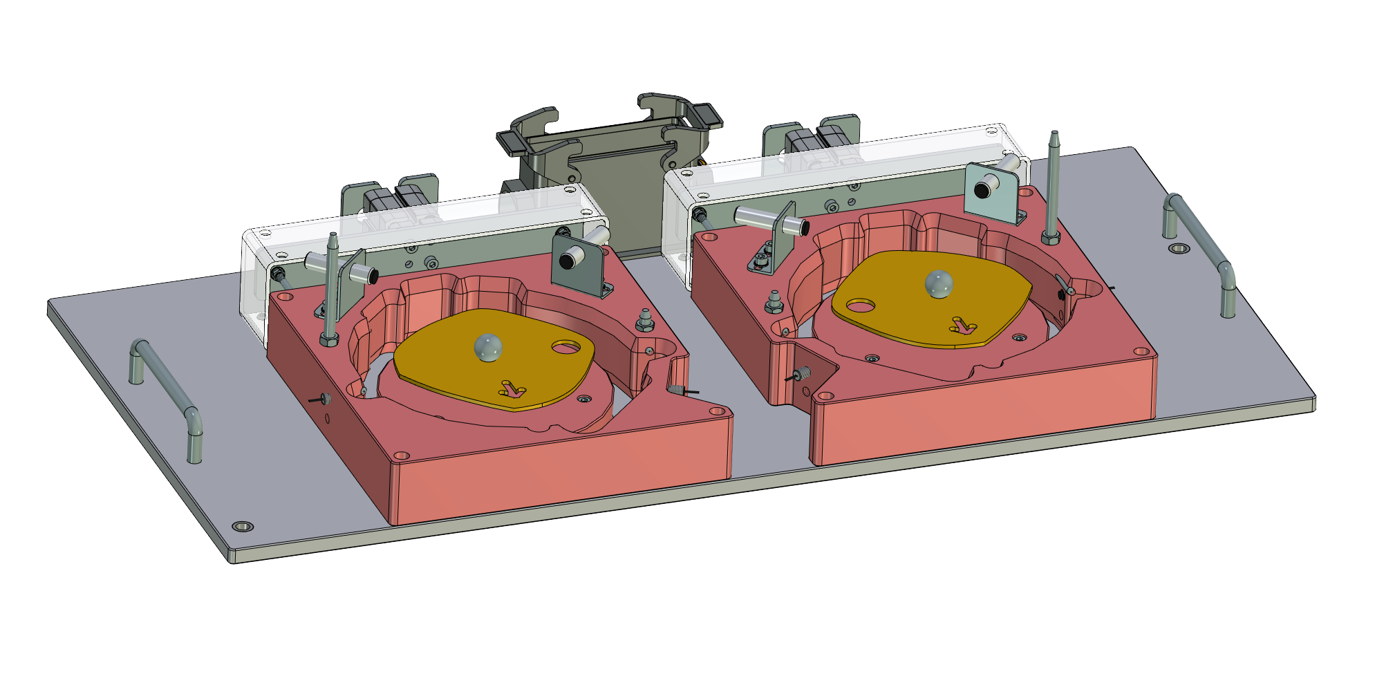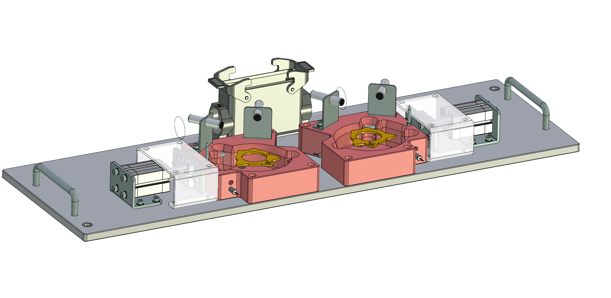 Varianta pro podobný díl. Deska s montážním hnízdem pro ruční sestavení. Hnízdo má detekci založených dílů a blokování NOK kusů.