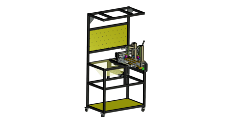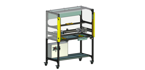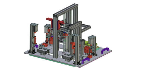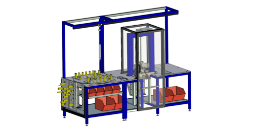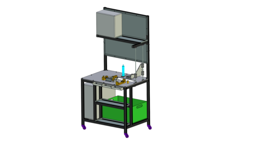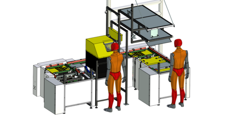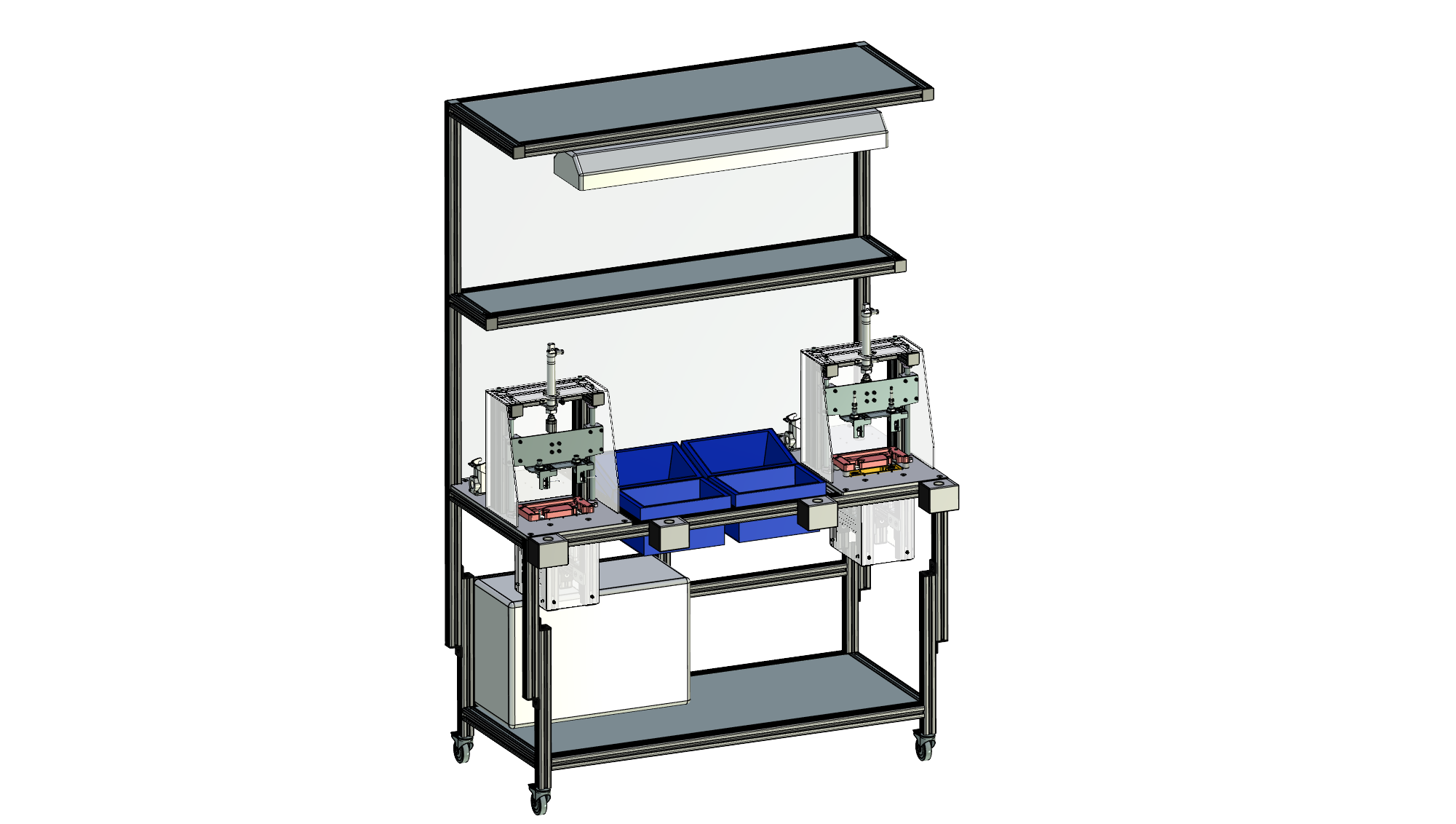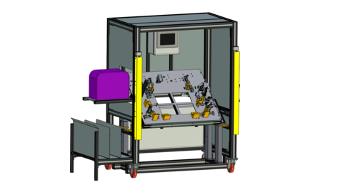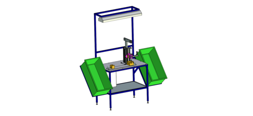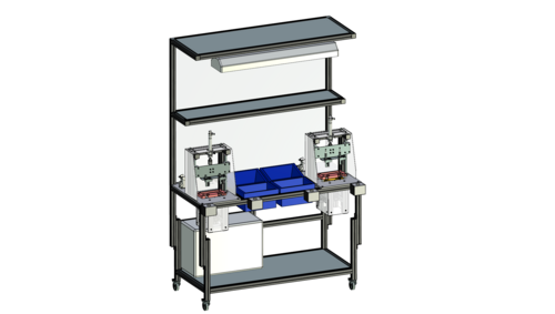 Komplexní stanice pro postupovou montáž deskových dílů. Zařízení navádí a hlídá správné založení dílů operátorem a jejich následné zaklapnutí. NOK kusy jsou blokovány.