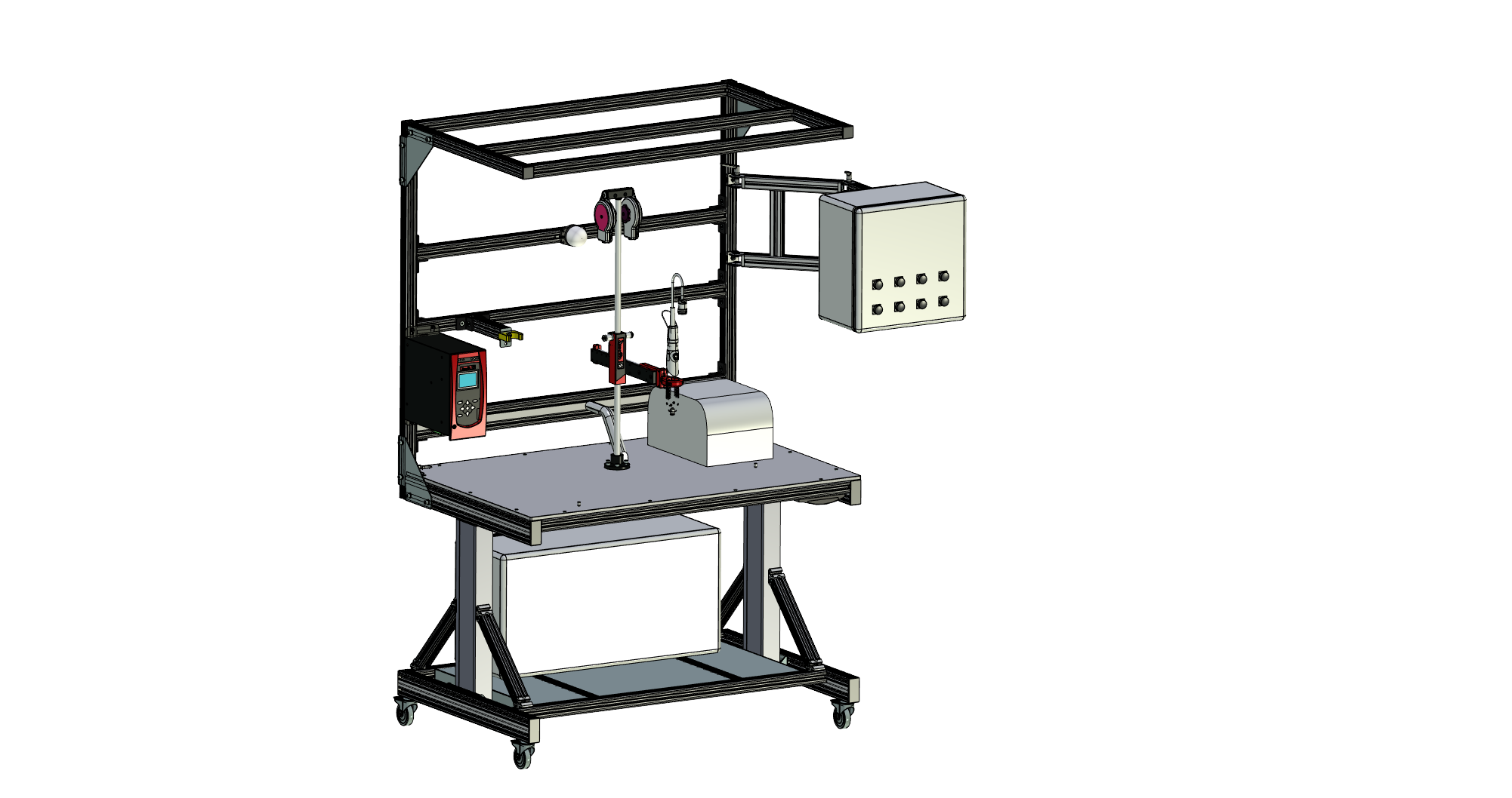 Pracovní stůl s vertikálně vedeným šroubovákem.
