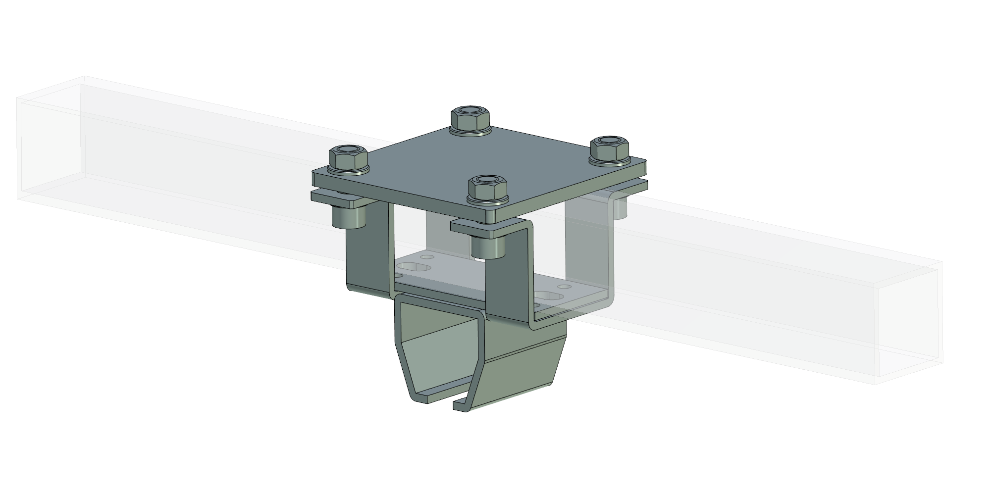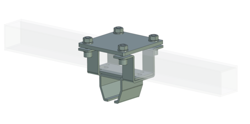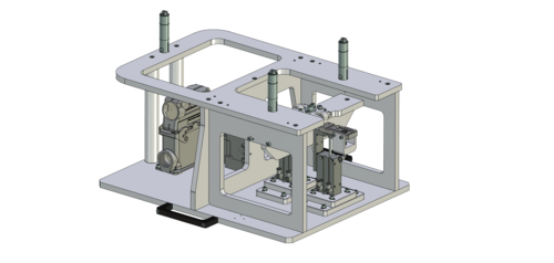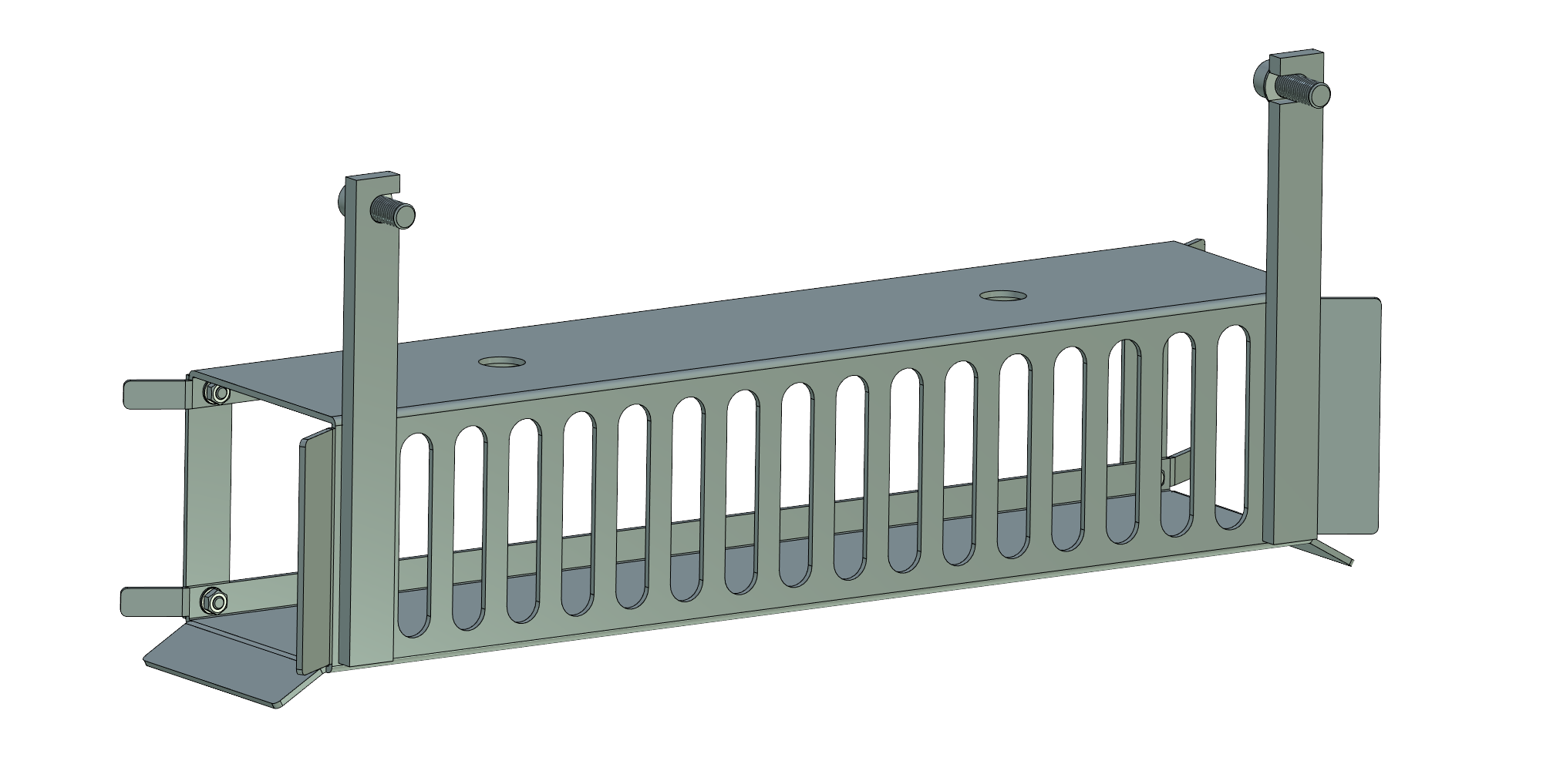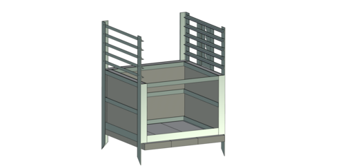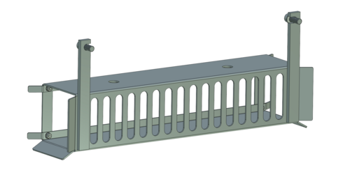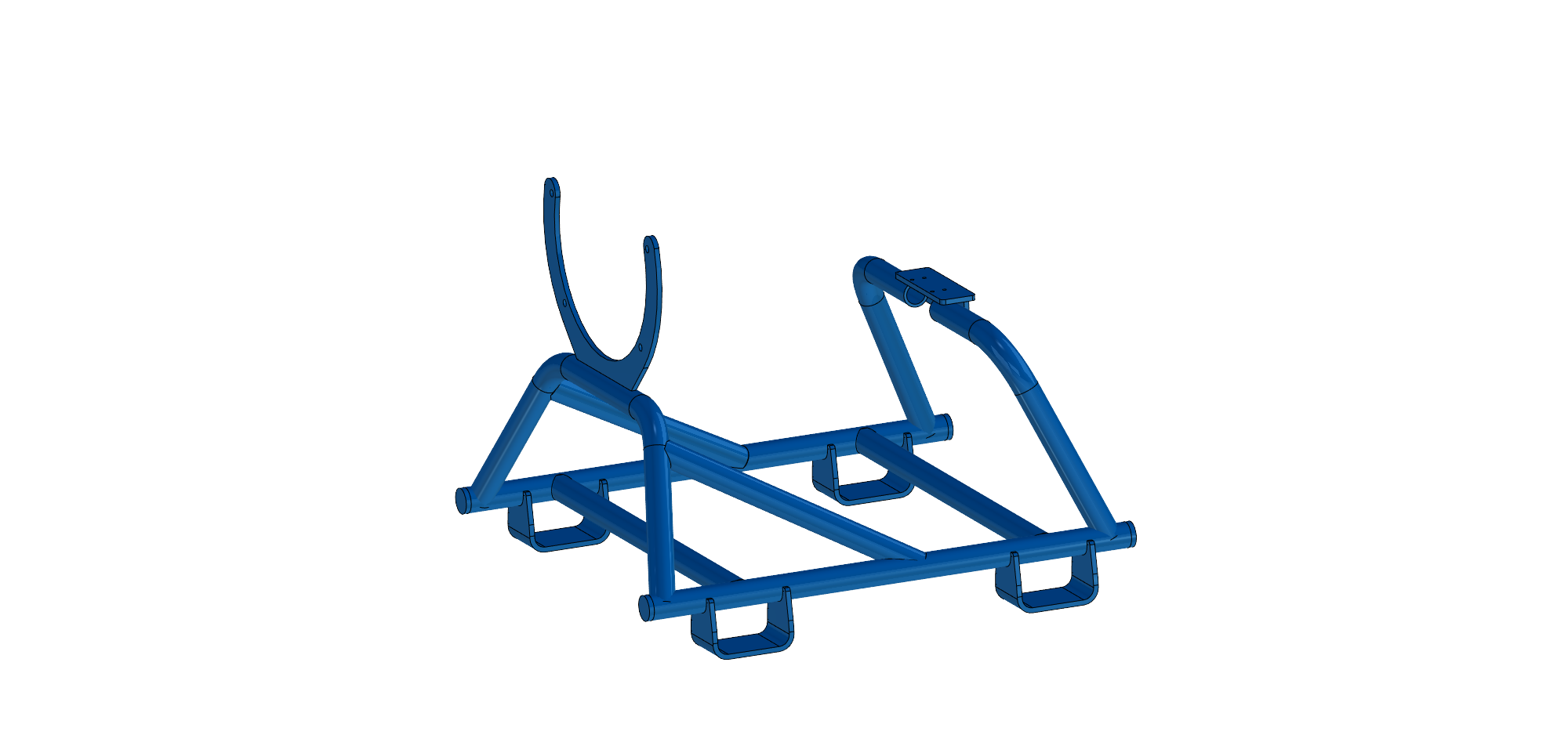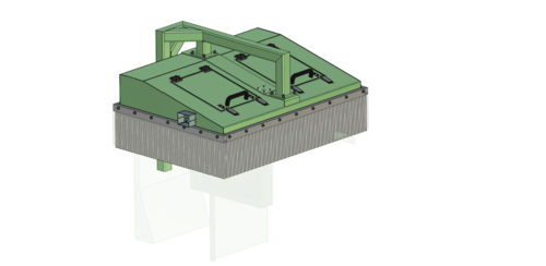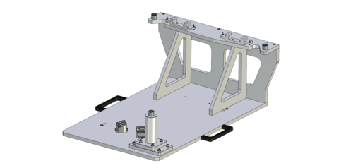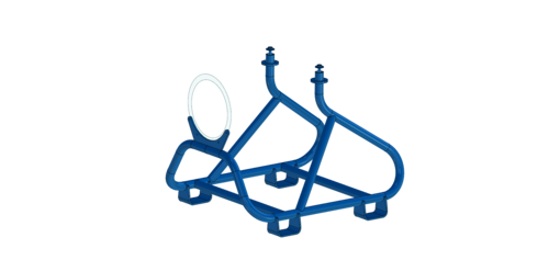 Stojan, jako součást balení a transportního přípravku. Pevně drží zařízení během transportu, umožňuje expedici z dřevěného přepravního boxu, orientaci před zavěšením na jeřáb a definuje polohu zavěšení.