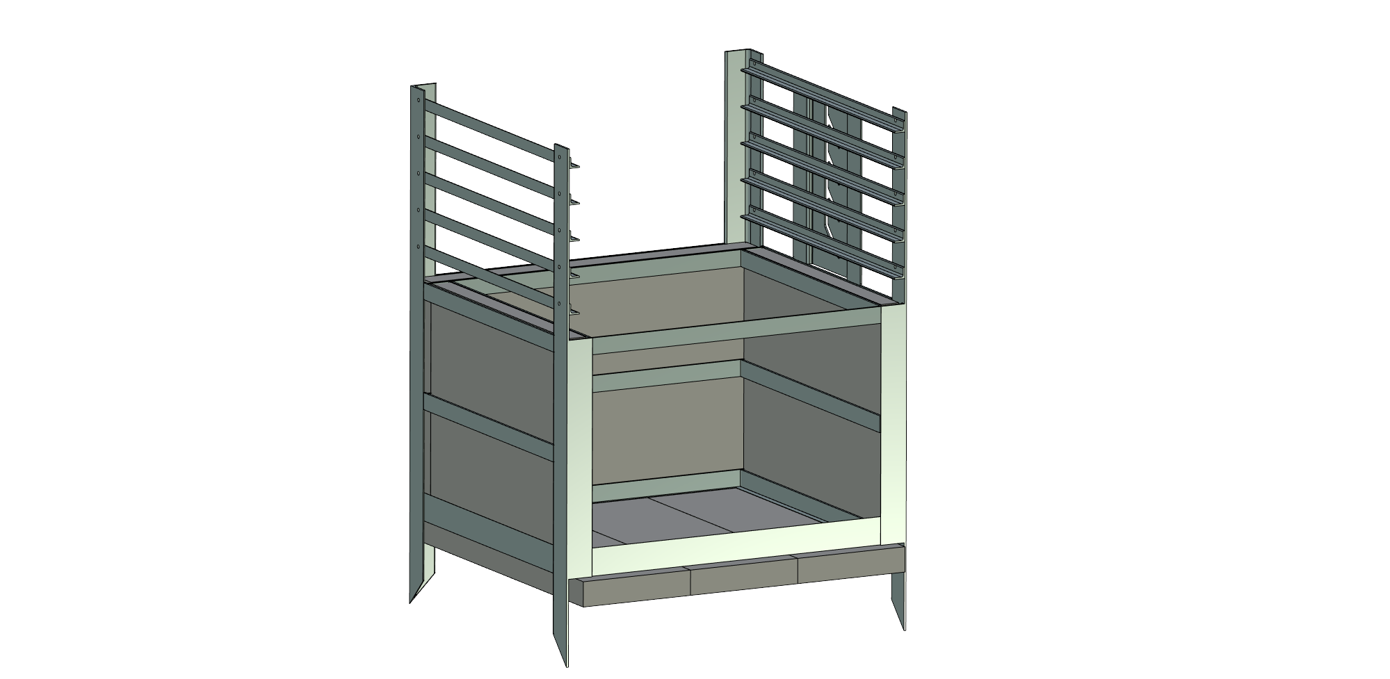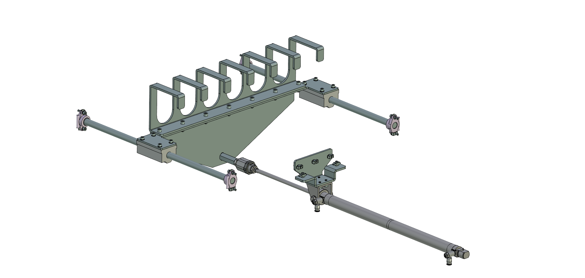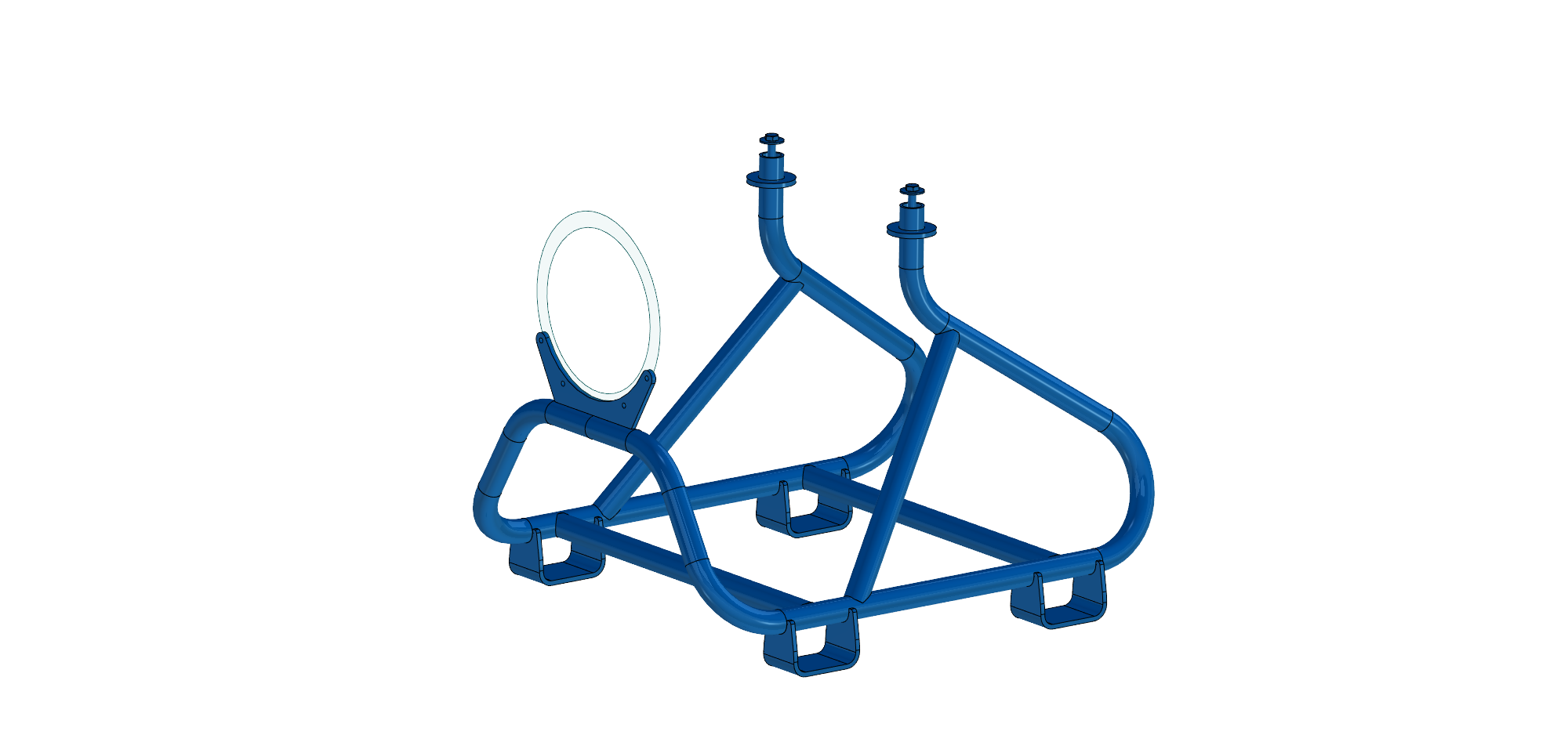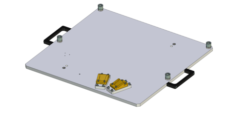 Stojan, jako součást balení a transportního přípravku. Pevně drží zařízení během transportu, umožňuje expedici z dřevěného přepravního boxu, orientaci před zavěšením na jeřáb a definuje polohu zavěšení.