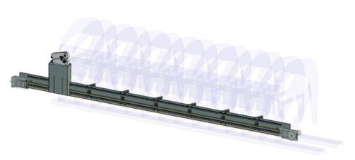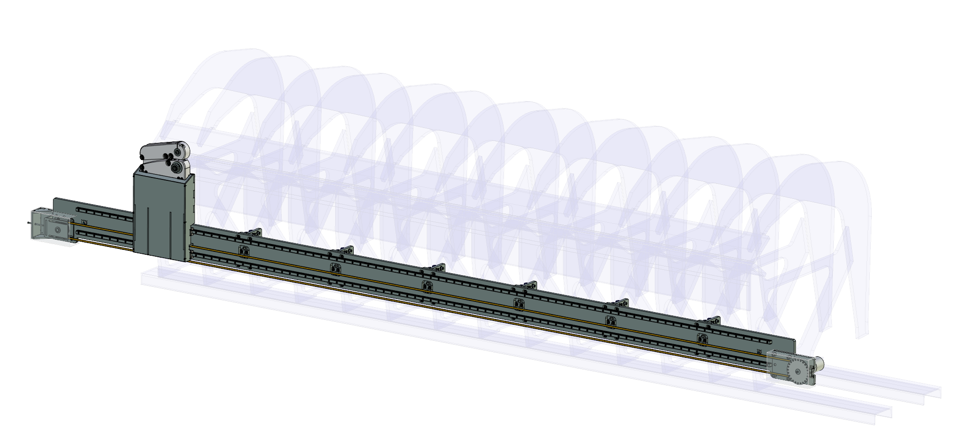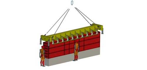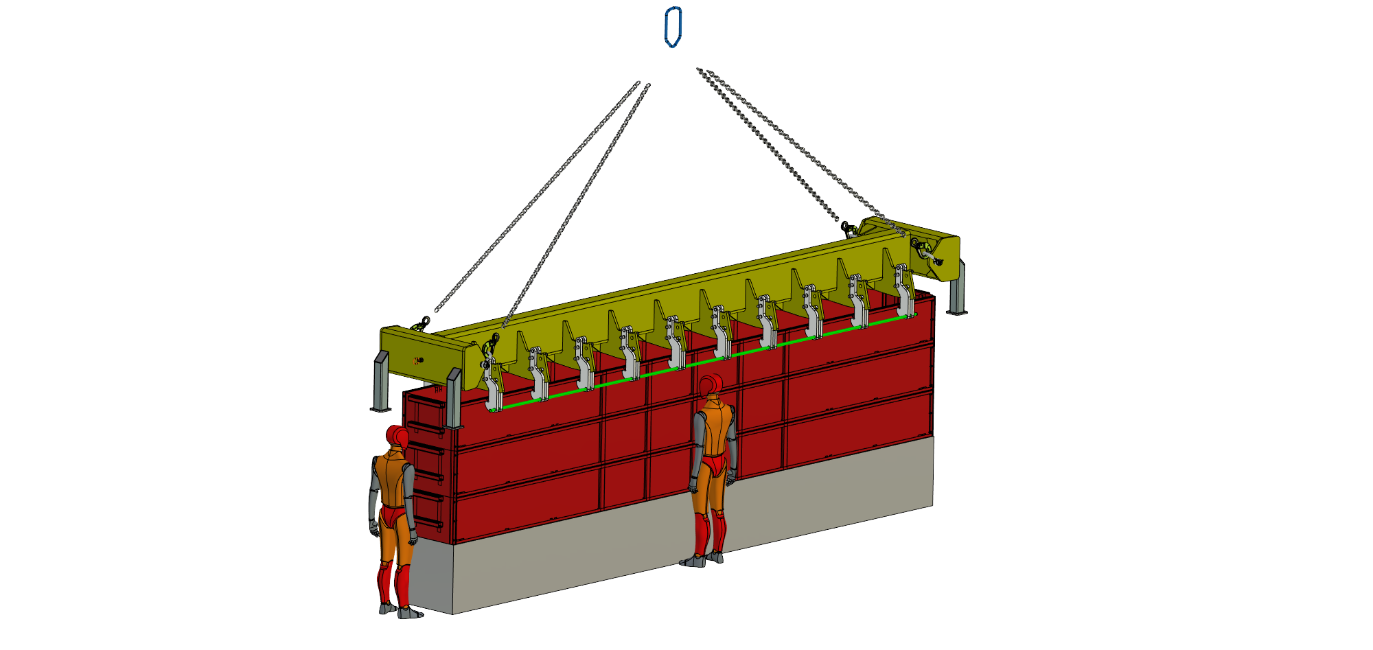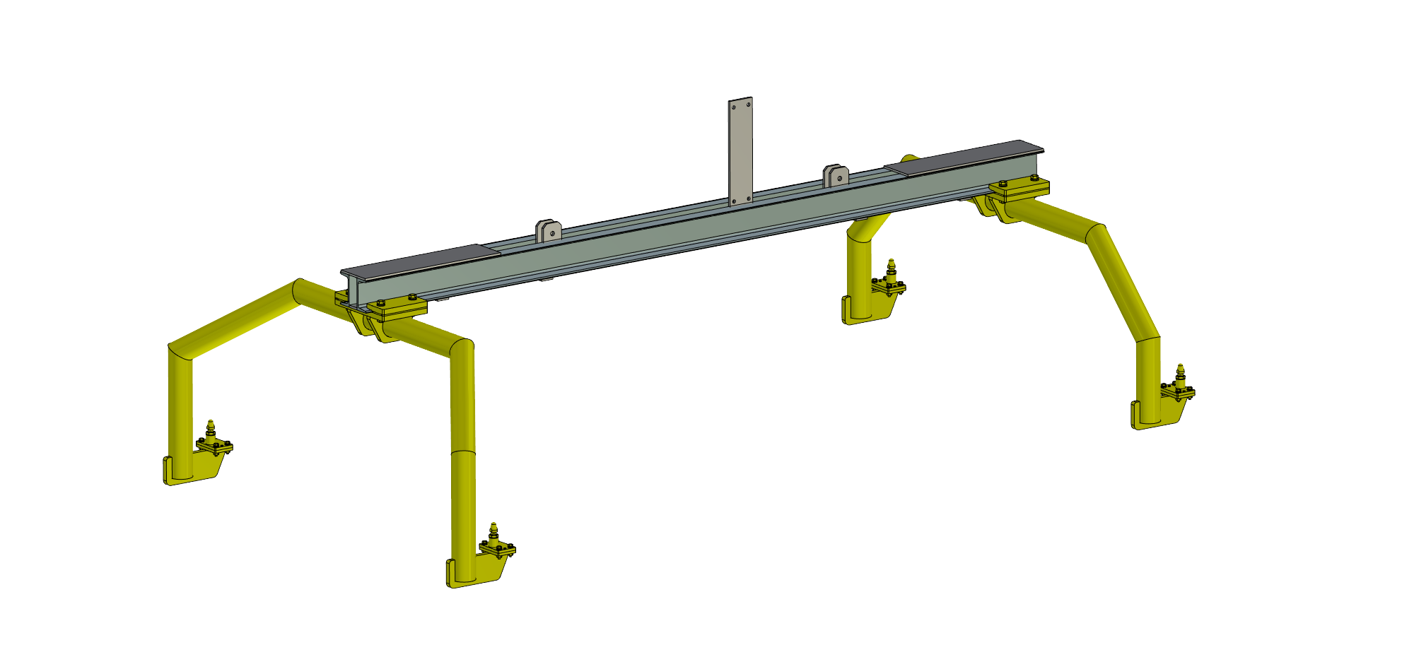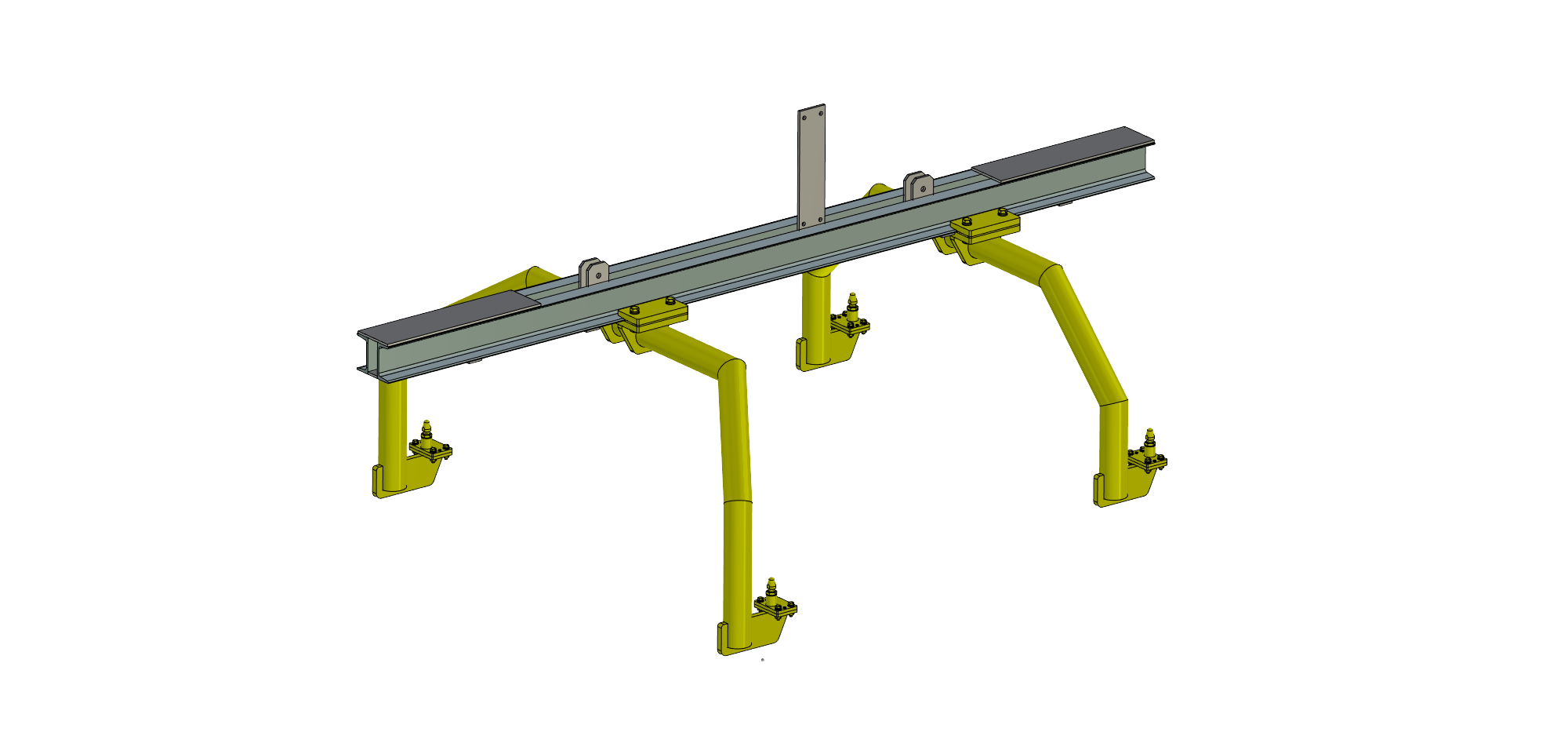 Tranverza pro jeřábovou manipulaci s dlouhými plechovými bednami.