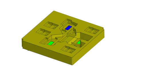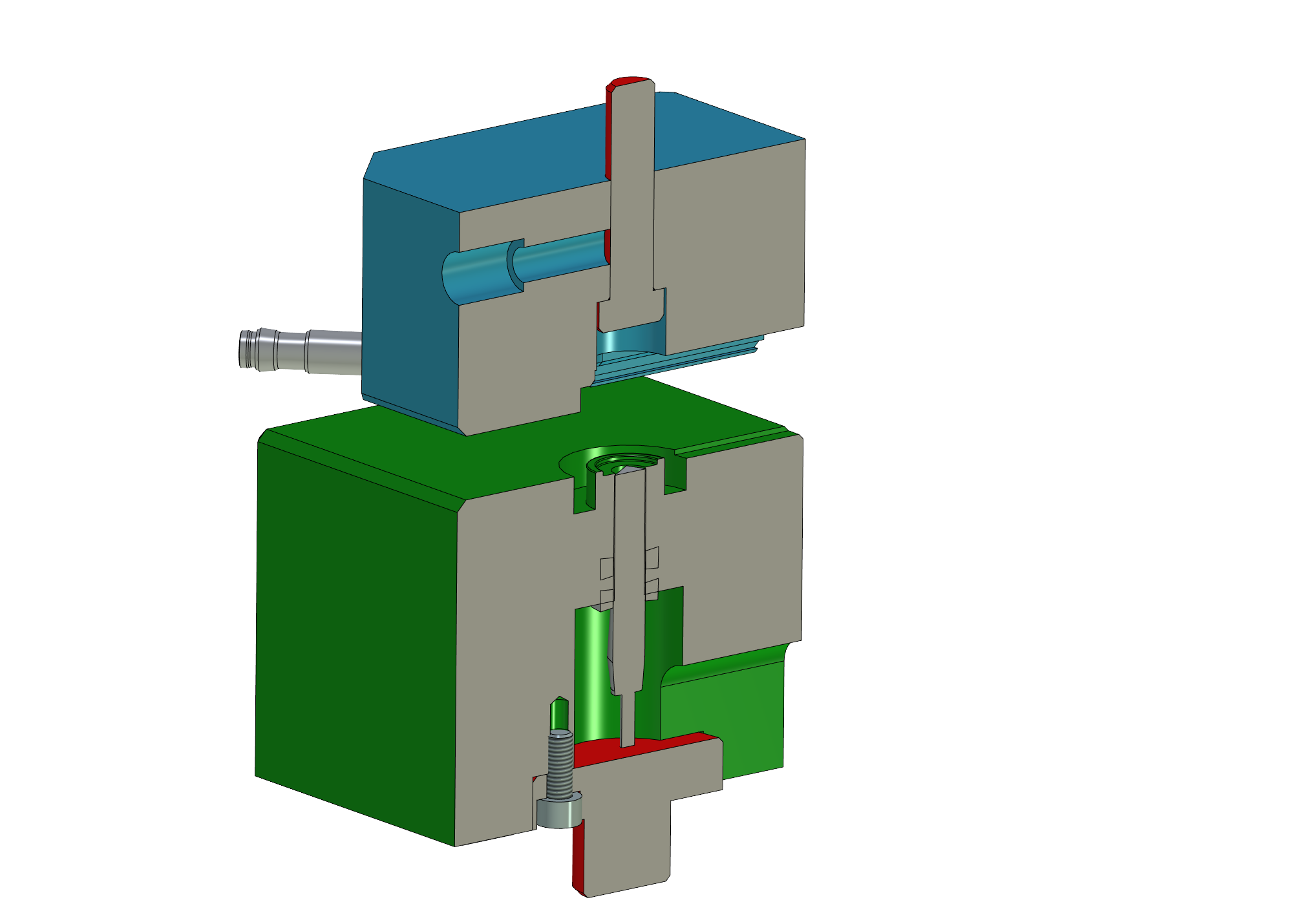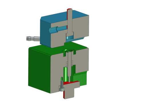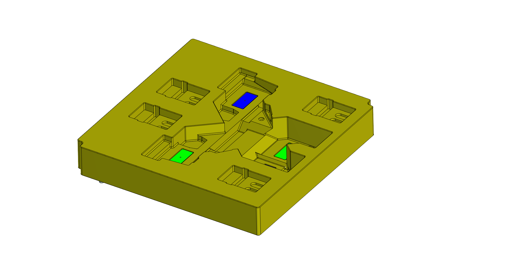 Hnízdo pro klipování kovových prvků do plastového dílu. Pravá varianta.