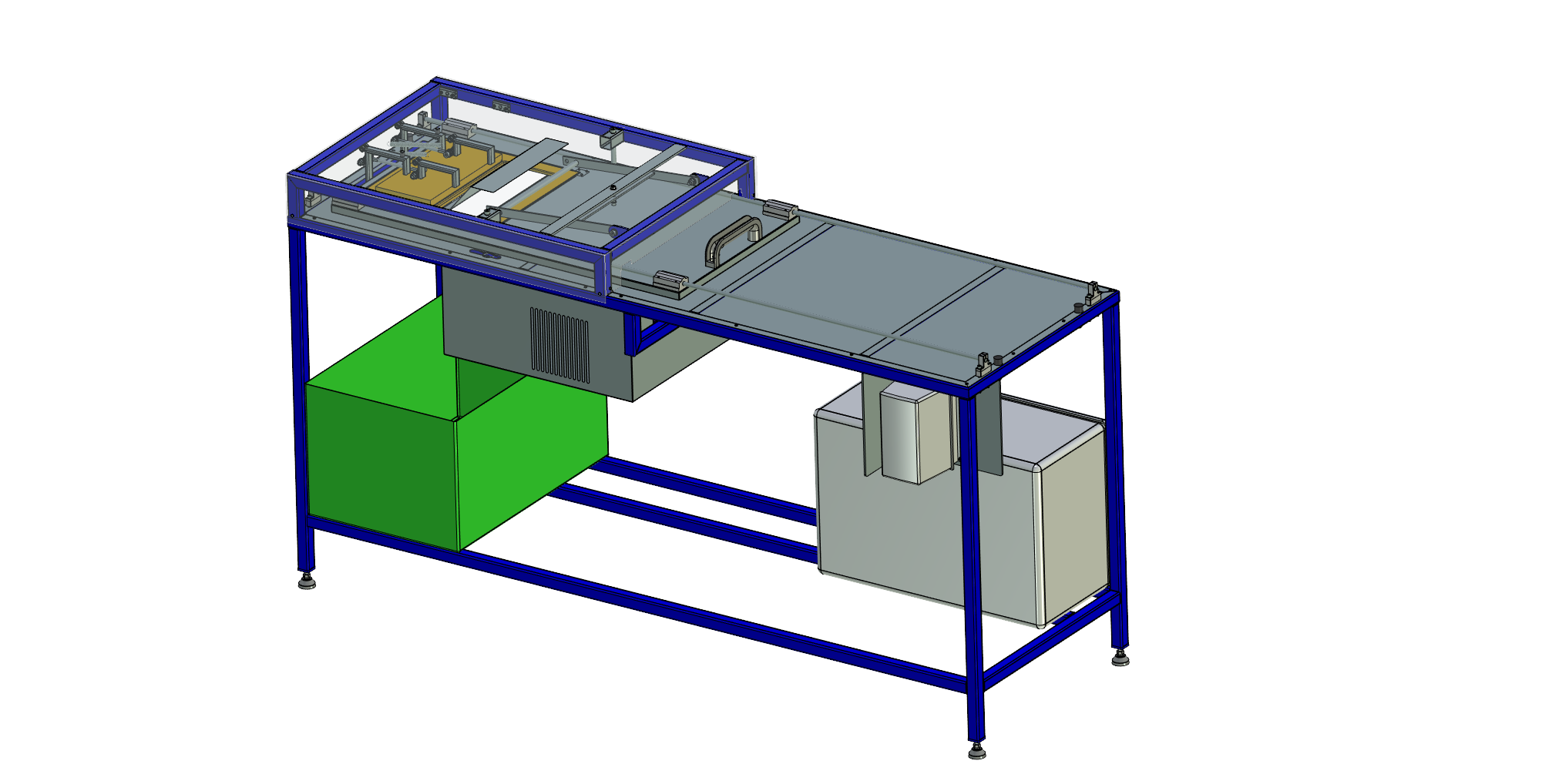 Upravená verze ofukovacího stolu určená k čištění dílů od třísek. Stůl má spodní ofuk. Deska je osazena senzory přítomnosti dílu, a řídicí chrání obsluhu proti expozici proudem vzduchu. Dole je malý ventilátor sbírající třísky do malého šuplíku. na pracovní desce je box s kontrolkami.
