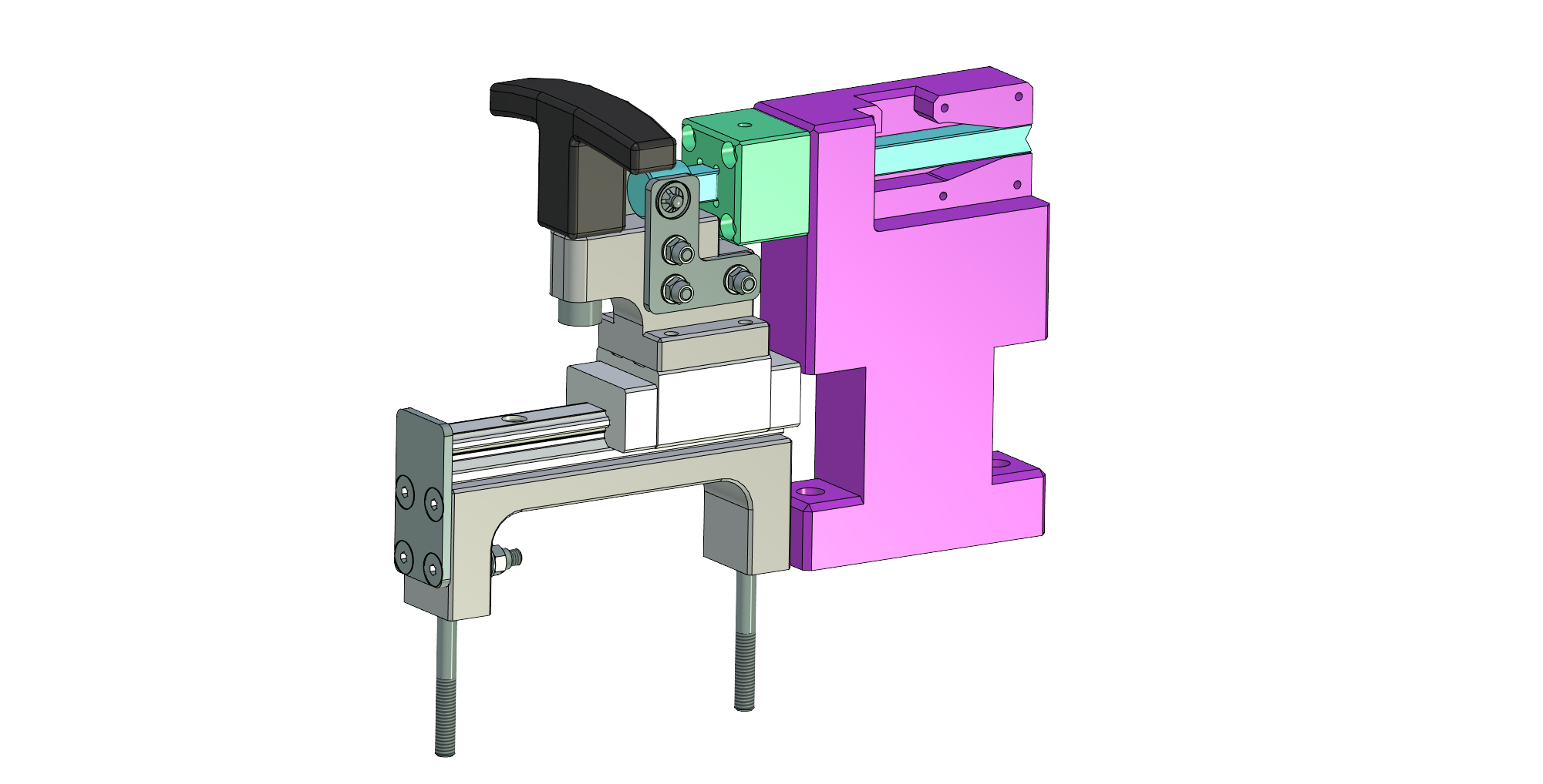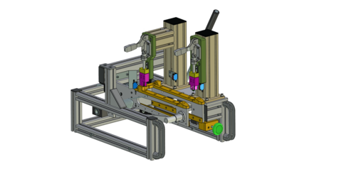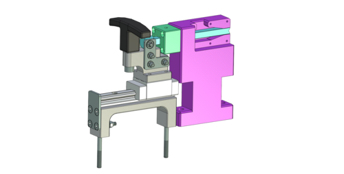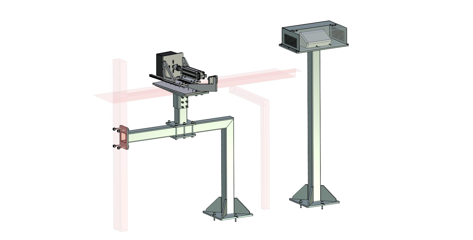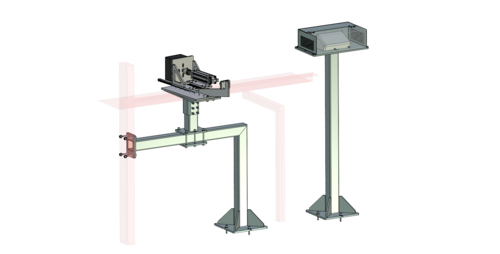 Držák automatické signovačky s možností seřízení ve dvou osách. Pneumatický přísun po lineárním vedení. Stojan pro průmyslový PC.
