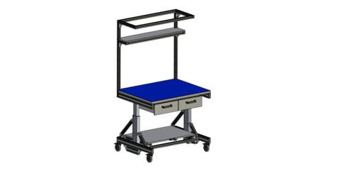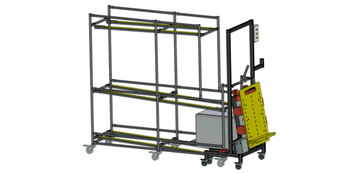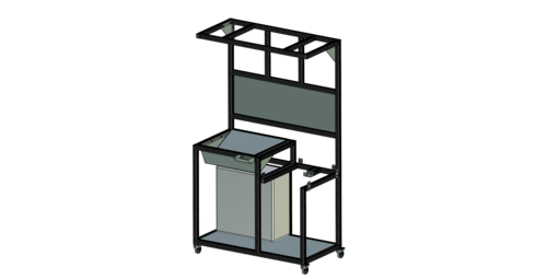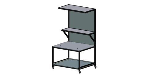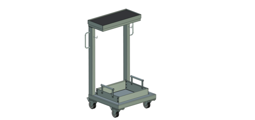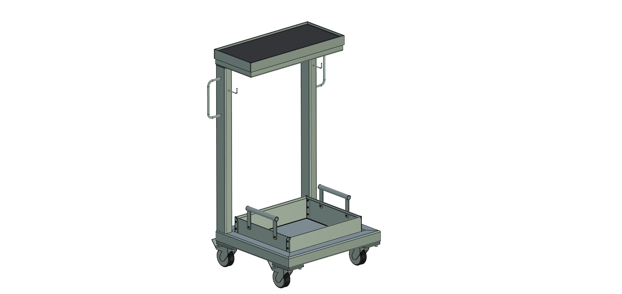Jednoduchý vozík pro personál sekce údržby pro převoz svářečky a dalšího nářadí s malou pracovní deskou.