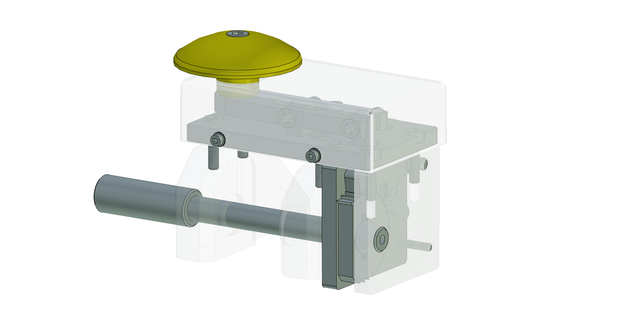 Jednoúčelový pracovní stůl k montáži zátek s bajonetem a těsněním. Zátkovací hlava je mechanicky zablokována v dolní poloze dokud operátor neprovede plné otočení rukojeti a tím 100% provedenému úkonu
