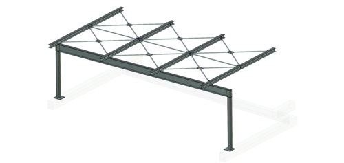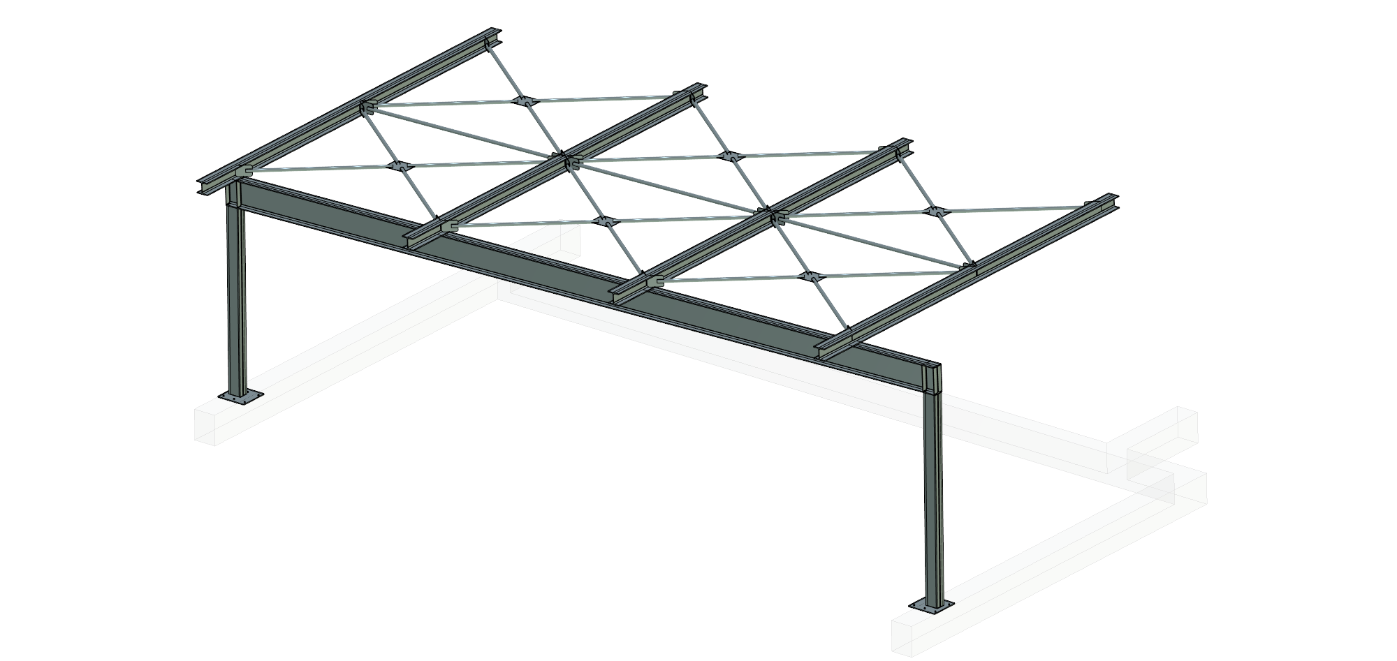 Konzolový držák osvětlení na střechu. Do střechy nebylo možné vrtat, proto jsou konzoly zatíženy závažím.