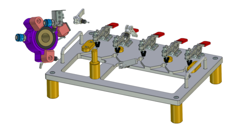 Kalibr pro pravidelné seřizování jednoúčelového montážního a testovacího zařízení.