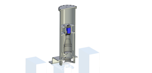 Hermeticky uzavřený držák kamery pro inspekci v chemicky znečištěném provoze.