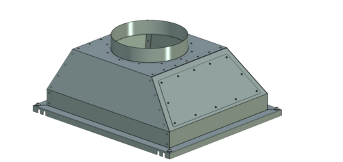 Zakrytování odsávaného prostoru s připojením na centrální odtah a s inspekčními dvířky.